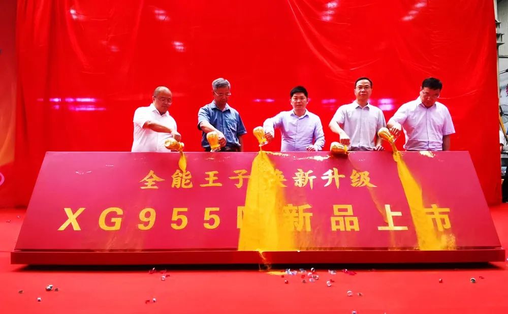 廈工股份公司總裁林春明、副總裁洪家慶、廈工機械(焦作)公司副總經(jīng)理李俊寧、上海柴油機股份公司營銷中心銷售總監(jiān)王超、中國重汽集團杭州發(fā)動機公司銷售部總經(jīng)理石國建一起為廈工XG955N新揭幕。