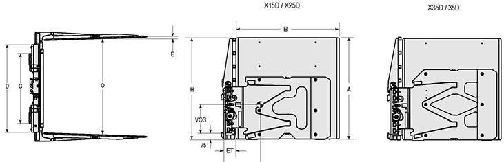 | Capacity 承載能力(kg) | Catalog Order NO 型號 | Mounting Class 安裝等級 | Opening Range張臂范圍(mm) | Arm Height臂高A(mm) | Arm Length臂長B(mm) | Vertcial Center Of Gravity垂直重心VCG(mm) | Load Center載荷中心(mm) | Overall Width總寬D(mm) | Hook Spread上鉤外側(cè)間距(mm) | Weight 自重(kg) | Effective 失載距ET(mm) | Horizontal Center of Gravity 水平重心CGH(mm) |