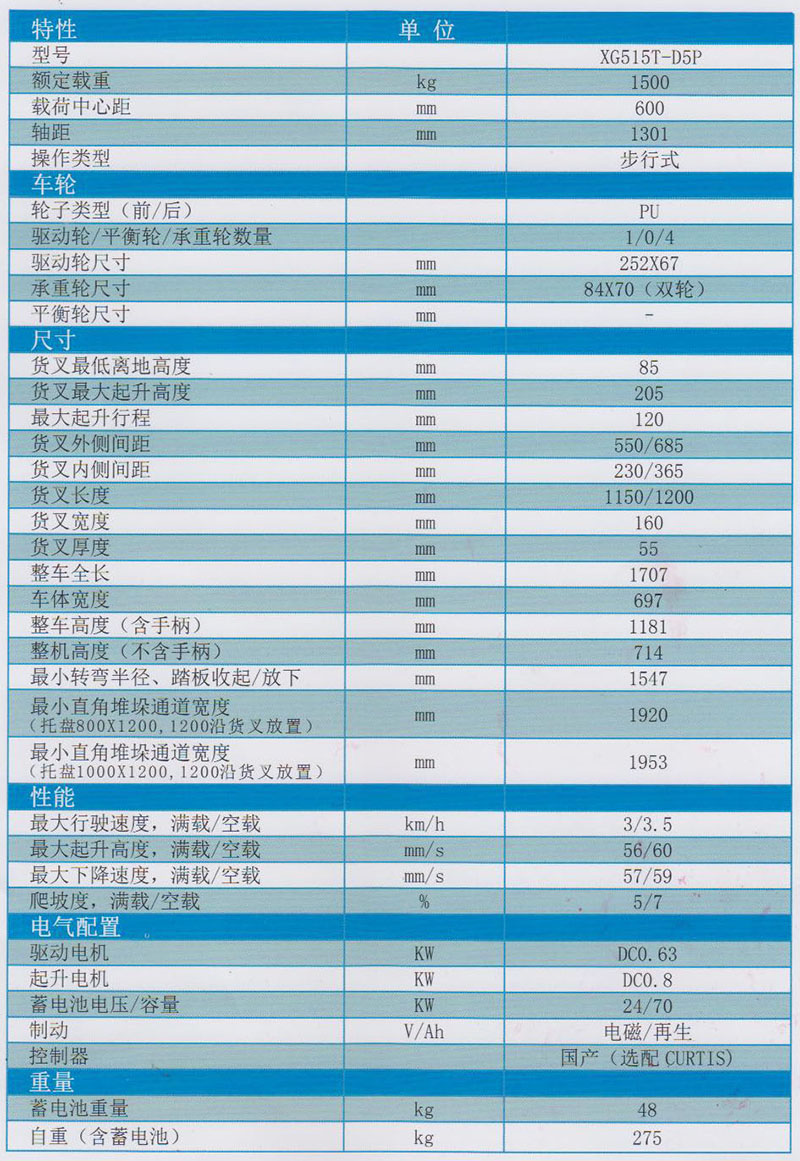 廈工小金剛搬運車 XGCD15-170G 電動托盤搬運車